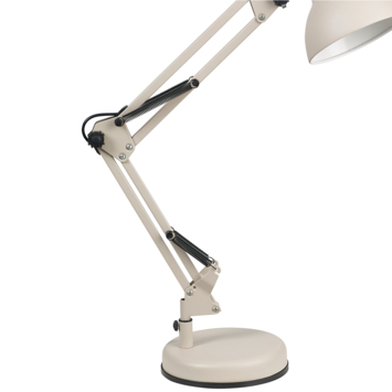 De KARWEI bureaulamp Noud beige doet het goed op ieder bureau. De lamp heeft de vorm van een ouderwetse bureaulamp en is uitgevoerd in de kleur beige. Je kunt de lamp in hoogte verstellen en je kunt de kap richten op iedere gewenste plek. De bureaulamp heeft een E27 fitting en is geschikt voor een maximaal vermogen van 40 watt. De afmetingen van de lamp zijn hoogte; 48 cm breedte;15,5 cm diepte. 33 cm