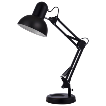 De KARWEI bureaulamp Noud zwart doet het goed op ieder bureau. De lamp heeft de vorm van een ouderwetse bureaulamp en is uitgevoerd in de kleur zwart. Je kunt de lamp in hoogte verstellen en je kunt de kap richten op iedere gewenste plek. De bureaulamp heeft een E27 fitting en is geschikt voor een maximaal vermogen van 40 watt. De afmetingen van de lamp zijn hoogte; 48 cm breedte;15,5 cm diepte. 33 cm