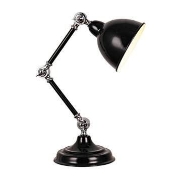 De KARWEI bureaulamp Specter zwart past op ieder bureau. De lamp heeft een klassieke uitstraling en past uitstekend op de werkkamer. De lamp is zwart van kleur en is voorzien van drie scharnieren. Met de scharnieren kun je de lamp in hoogte verstellen en het licht richten. De bureaulamp heeft een E14 fitting en is geschikt voor een maximaal vermogen van 60 watt.