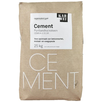 KARWEI cement 25 kg is geschikt voor het gebruik als grondstof voor het aanmaken van betonmortel, metsel- en voegspecie. Het cement is Portlandkalksteen.