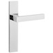 Deurkruk. Type Chelsea RVS kwaliteit gepolijst, op langschild blind (zonder sleutelgat). De deurklink is vast gemonteerd op het schild en is voorzien van een veer waardoor de kruk niet gaat hangen. In de serie Chelsea zijn ook de WC 63/8, sleutelgat 56mm en vierkant rozet beschikbaar. Geen afwijkende maten beschikbaar voor WC, sleutel en cilinder.