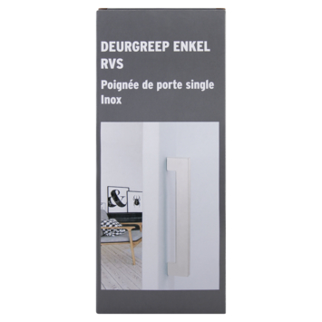 Deurgreep Eddy enkel RVS kwaliteit. De verpakking bevat 1 handgreep inclusief de schroeven voor de bevestiging op de (schuif)deur.