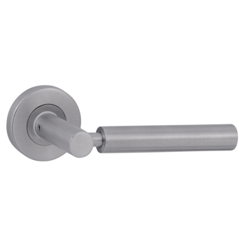 Deurkruk. Type Adam RVS kwaliteit geborsteld , op rond rozet. De deurklink is vast gemonteerd op het rozet en is voorzien van een veer waardoor de kruk niet gaat hangen. In de serie Adam zijn ook sleutelplaatje, cilinderplaatje en WC garnituur beschikbaar.