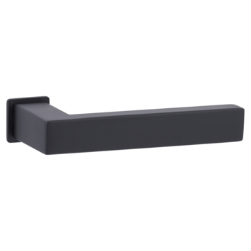 Deurkruk. Type Chelsea zwart RVS kwaliteit, op klein vierkant rozet. De deurklink is vast gemonteerd op het rozet. In de serie Chelsea zijn ook WC 63/8, blind schild en sleutelgat 56mm beschikbaar. Eveneens zijn er bijpassende cilinder -en sleutelplaatjes en wc garnituur te verkrijgen.