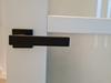 Deurkruk. Type Chelsea zwart RVS kwaliteit, op vierkant rozet. De deurklink is vast gemonteerd op het rozet en is voorzien van een veer waardoor de kruk niet gaat hangen. In de serie Chelsea zijn ook WC 63/8, blind schild en sleutelgat 56mm beschikbaar. Eveneens zijn er bijpassende cilinder -en sleutelplaatjes en wc garnituur te verkrijgen. Geen afwijkende maten voor WC, sleutel en cilinder beschikbaar.