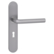Deurkruk type Gino RVS look, sleutel schild. Deze deurkrukset is eenvoudig met houtschroefjes te monteren door een klik systeem in de deurkruk.