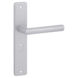 Deurkruk. Type Greece anox (mat aluminium), op langschild voor wc, toilet of badkamer 63mm met stift 8mm. De deurklink is vast gemonteerd op het schild en is voorzien van een veer waardoor de kruk niet gaat hangen. In de serie Greece zijn ook een blind schild, sleutelgat 56mm en vierkant rozet beschikbaar. Het is mogelijk om in de bouwmarkt afwijkende WC, sleutel en cilindermaten te bestellen.