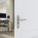 Deurkruk. Type Henry RVS kwaliteit geborsteld, op langschild met sleutelgat 56mm. De deurklink is vast gemonteerd op het schild en is voorzien van een veer waardoor de kruk niet gaat hangen. De deurkrukset uit de Henry serie heeft een mooie, tijdloos design voor bijna ieder type inrichting. In de serie Henry zijn ook de WC 63/8, blind schild en rond rozet beschikbaar. Het is mogelijk om in de bouwmarkt afwijkende WC, sleutel en cilindermaten te bestellen.