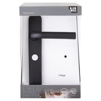 Karwei deurkruk set Henry ovaal schild vrij-bezet sluiting 63/8 mm zwart RVS