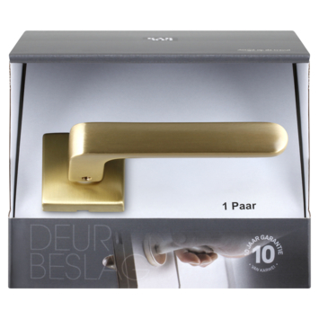 Karwei deurkruk set Leandro vierkant rozet messing mat63.59
