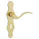 Deurkruk. Type Lepel glans messing, op langschild met sleutelgat 56mm. De deurklink is vast gemonteerd op het schild en is voorzien van een veer waardoor de kruk niet gaat hangen. In de serie Lepel zijn ook de WC 63/8 en blind schild beschikbaar. Het is mogelijk om in de bouwmarkt afwijkende WC en cilinder maten te bestellen.