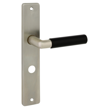 Deurkruk. Type Nelson glans vernikkeld / zwart, op langschild voor wc, toilet of badkamer 63mm met stift 8mm. De deurklink is vast gemonteerd op het schild en is voorzien van een veer waardoor de kruk niet gaat hangen. In de serie Nelson zijn ook blind schild, sleutelgat 56mm en rond rozet beschikbaar. Het is mogelijk om in de bouwmarkt afwijkende WC, sleutel en cilindermaten te bestellen.