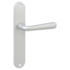 Deurkruk. Type Spanje anox (mat aluminium), op langschild blind (zonder sleutelgat). De deurklink is vast gemonteerd op het schild en is voorzien van een veer waardoor de kruk niet gaat hangen. In de serie Spanje zijn ook de WC 63/8, sleutelgat 56mm en rond rozet beschikbaar. Het is mogelijk om in de bouwmarkt afwijkende WC, sleutel en cilindermaten te bestellen.