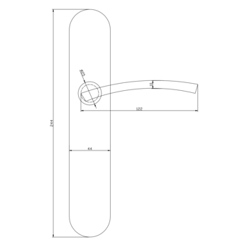 Deurkruk. Type Ben RVS kwaliteit geborsteld , op langschild blind (zonder sleutelgat). De deurklink is vast gemonteerd op het schild en is voorzien van een veer waardoor de kruk niet gaat hangen. In deze serie zijn ook de WC 63/8, sleutel en rond rozet beschikbaar. Het is mogelijk om in de bouwmarkt afwijkende WC en cilinder maten te bestellen.