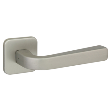 Deurkruk type Lucia RVS look, op vierkant rozet. Deze deurkrukset is voorzien van het EASY CLICK systeem, monteren in minder dan 1 minuut zonder gereedschap!