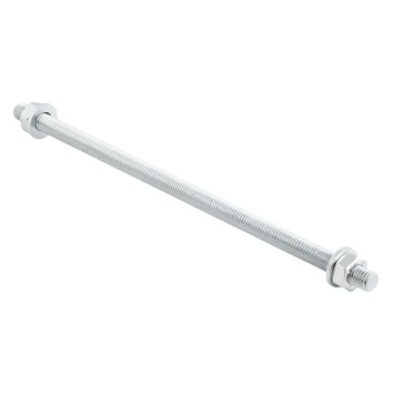 Verzinkte draadeind, draadstang incl. ringen en moeren. draadeind, draadstangen worden veelal gebruikt om houten constructies aan elkaar te koppelen. De draadeind, draadstang is eenvoudig in te korten.