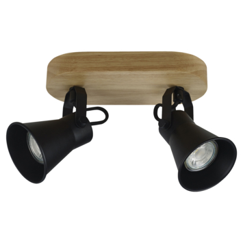 De KARWEI duobalk Bruno is een moderne plafondlamp met een industriële touch. Waar de houten plaat zorgt voor een moderne look, creëren de twee zwarte spotjes een industrieel gevoel. Alle twee de kapjes zijn draaibaar en hierdoor gemakkelijk af te stellen op de gewenste plek.
