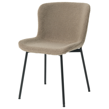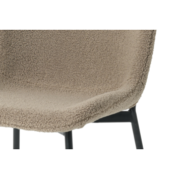 De Belle eetkamerstoel is de perfecte keuze voor wie op zoek is naar een comfortabele en stijlvolle toevoeging aan hun eetkamer. De teddy stof en fluffy zitting van de Belle zorgen niet alleen voor een comfortabele zitplaats, maar ook voor een warme en gezellige sfeer aan de eettafel. Deze stoel is verkrijgbaar in een mooie bruine kleur die goed past bij verschillende interieurstijlen en de mat zwarte metalen poten geven de Belle een eigentijdse uitstraling.