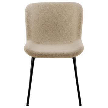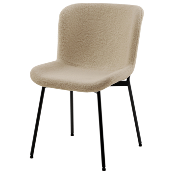 De KARWEI eetkamerstoel Belle zand teddy stof is een stijlvolle en comfortabele stoel die warmte en sfeer toevoegt aan jouw eetkamer. Dankzij de zachte teddy bekleding en de fluffy zitting nodigt Belle uit tot lange, gezellige avonden aan tafel. De zandkleurige stof geeft de stoel een tijdloze en knusse uitstraling, terwijl de mat zwarte metalen poten zorgen voor een moderne en eigentijdse touch. Hierdoor past Belle moeiteloos bij uiteenlopende interieurstijlen.