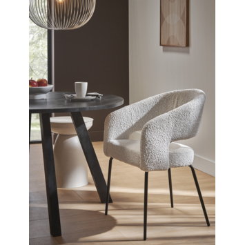 KARWEI eetkamerstoel Eden natural wit bouclé stof met armleuning