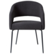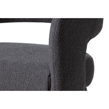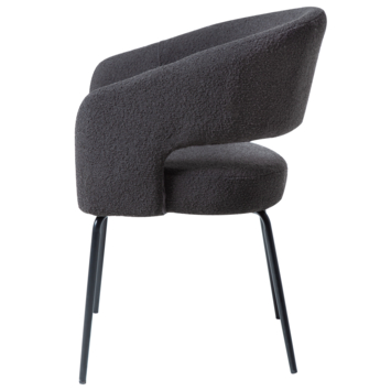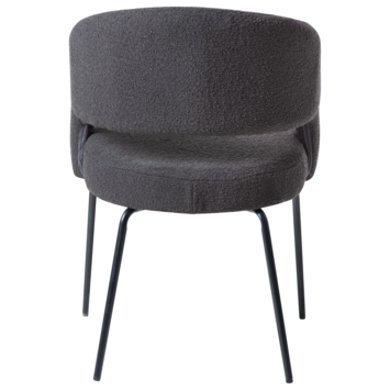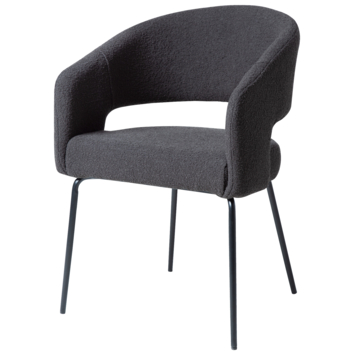 De Eden boucle is een zwarte eetkamerstoel met een open rugleuning, gemaakt van textiel. De eetkamerstoel heeft 4 zwartkleurige poten waar die op steunt. Het is een mooie en comfortabele eetkamerstoel die perfect in elke living past. De eetstoel heeft een hoogte van 81cm, diepte van 57 en breedte van 56cm.