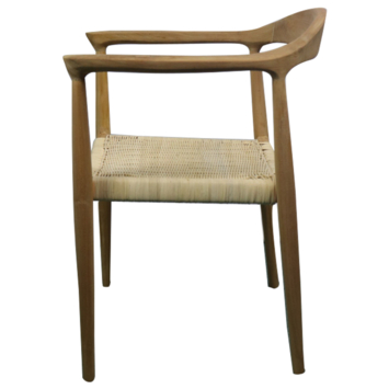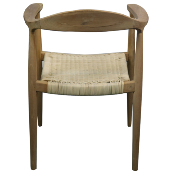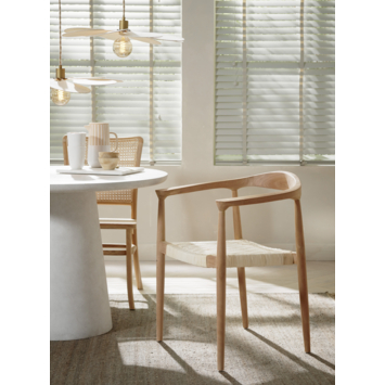 Eetkamerstoel Zaria is een combinatie van een rattan zitplek met houden stoelpoten. De stoel heeft een unieke uitstraling en staat leuk in meerdere ruimtes in het huis.