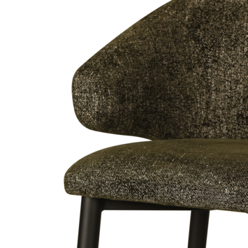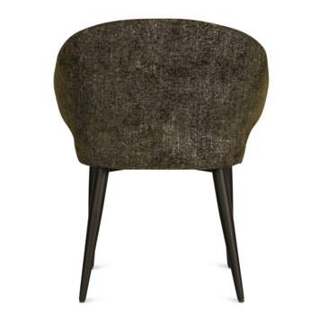 De Melvin eetkamerstoel is een unieke eetstoel met een authentieke look. De kleur van de eetkamerstoel is gestoffeerd in een groene kleur. De eetkamerstoel heeft 4 zwartkleurige metalen poten waar die op steunt. Deze eetkamerstoel is modern en stijlvol en past in bijna elke living. De hoogte van de stoel is 78cm, de diepte is 58cm en de breedte is 63cm.