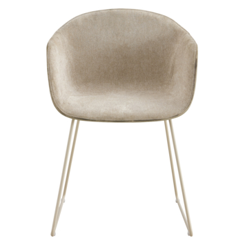De KARWEI eetkamerstoel Moris beige stof met armleuning is een elegante en comfortabele keuze voor jouw eetkamer. Dankzij de zachte bekleding in een neutrale beige tint straalt de stoel warmte en rust uit, waardoor hij eenvoudig te combineren is met zowel moderne als klassieke interieurs. Het metalen frame zorgt voor stevigheid en stabiliteit, terwijl de subtiel vormgegeven armleuningen extra ondersteuning bieden tijdens het tafelen.
