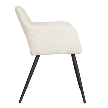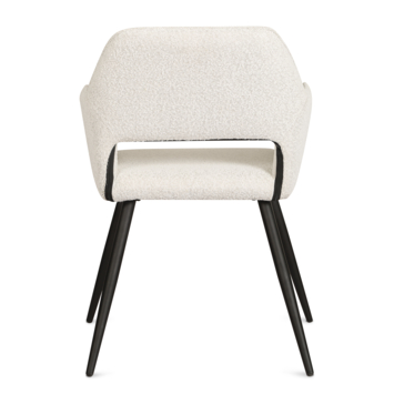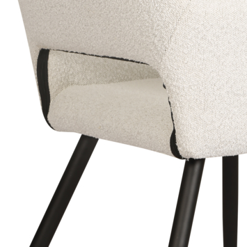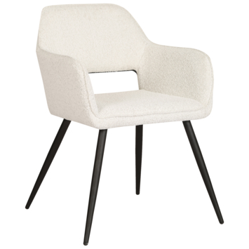 Eetkamerstoel Vera is gestoffeerd in een creme kleurige boucle stoffering met een vier metalen poten. De stoel heeft een unieke luxe uitstraling en staat leuk in meerdere ruimtes in het huis. De stoel heeft een rechthoekige gevormde zitting die heerlijk zit. Eetkamerstoel Vera is leuk te combineren met andere stoelen. De kleur is creme, verkrijgbaar in meerdere kleuren.