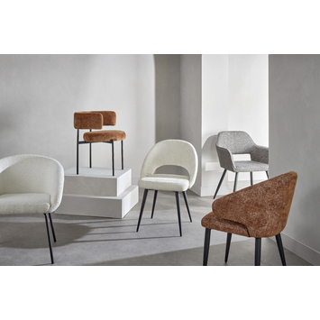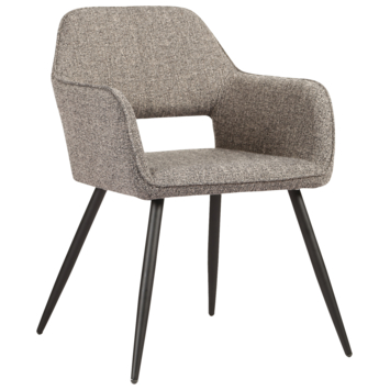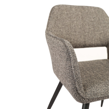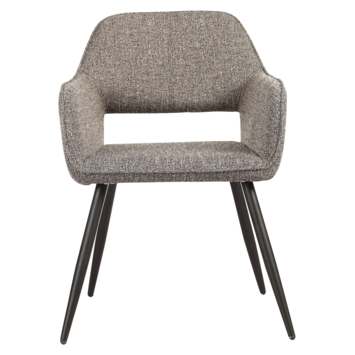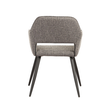 Eetkamerstoel Vera is gestoffeerd in een zwarte gemeleerde stoffering met een vier metalen poten. De stoel heeft een unieke luxe uitstraling en staat leuk in meerdere ruimtes in het huis. De stoel heeft een rechthoekige gevormde zitting die heerlijk zit. Eetkamerstoel Vera is leuk te combineren met andere stoelen. De kleur is zwart gemeleerd, verkijgbaar in meerdere kleuren. De afmetingen zijn (HxBxD) 83,5x59x57 cm