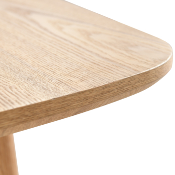 Het tafelblad is vervaardigd uit FSC-gecertificeerd hout en MDF, en heeft een solide dikte van 2,5 cm. Dit maakt de tafel stevig en eenvoudig in onderhoud. De eettafel wordt geleverd als bouwpakket en is met de duidelijke montage instructie eenvoudig in elkaar te zetten. Voor een lange levensduur adviseren we om onderzetters en placemats te gebruiken, zodat de gelakte afwerking goed beschermd blijft. Een gelakte tafel is namelijk krasvast, maar niet volledig krasbestendig. Plaats bovendien viltglijders onder de poten om krassen op harde vloeren te voorkomen.