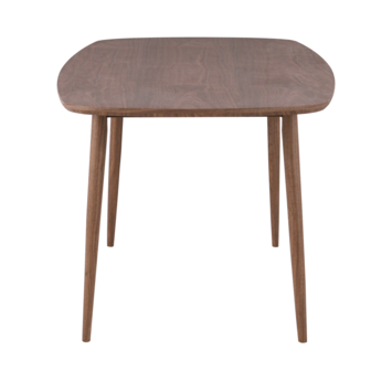 De tafel is vervaardigd uit FSC-gecertificeerd hout en MDF en heeft een tafelblad van 2,5 cm dik. Dit zorgt voor stevigheid en maakt de tafel eenvoudig te onderhouden. De warme walnootkleur geeft de eetkamer bovendien een sfeervolle en tijdloze look. De eettafel wordt geleverd als bouwpakket en is met de meegeleverde montage instructie gemakkelijk in elkaar te zetten. Gebruik bij voorkeur onderzetters en placemats om de gelakte afwerking goed te beschermen. Hoewel de lak krasvast is, blijft het materiaal gevoelig voor krassen. Voor harde vloeren raden we aan viltglijders onder de poten te plaatsen, zodat de vloer mooi blijft.