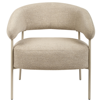 De fauteuil Coco bouclé beige is een charmante en uitnodigende fauteuil. Deze fauteuil combineert moeiteloos stijl met comfort. Het ontwerp onderscheidt zich door de combinatie van metalen poten met de bouclé bekleding. Het gebruik van zacht bouclé in een beigetint zorgt voor een neutrale look die past bij diverse interieurstijlen. Met armleuningen voor extra comfort, een zithoogte van 47 cm, een zitdiepte van 58 cm en een identieke breedte, is deze fauteuil ontworpen voor een prettige zitervaring. De stoel heeft een afmeting van 76 x 70 x 68 cm (hxbxd) en is daarmee ideaal voor zowel kleine als grotere leefruimtes. Of je nu deze comfortabele stoel gebruikt om een knus hoekje te creëren in je woonkamer of als een aangename toevoeging aan je slaapkamer, fauteuil Coco staat voor je klaar.