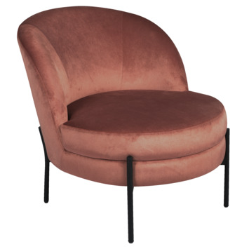 Ga voor een echte eyecatcher in je interieur met deze Fauteuil Eef. De ronde vintage vormen, de kleur, het fluweel, het zwart metalen onderstel, kortom: wat een aanwinst voor je interieur. Hier wil je op chillen na een lange dag. Ook leuk om als accent in een kinderkamer te plaatsen. De kleur is roze, het onderstel is van metaal. De afmetingen zijn (HxBxD) 71,5x79,5x66 cm.