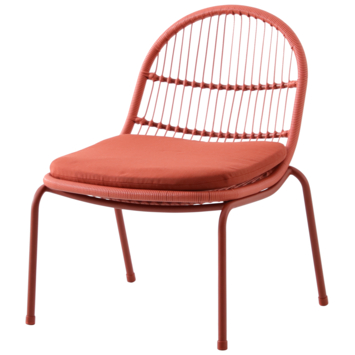 De KARWEI fauteuil Indy in terracotta voegt warmte en stijl toe aan je tuin of balkon. Het metalen frame in combinatie met het wicker vlechtwerk geeft deze stoel een eigentijdse uitstraling. De fauteuil is 79,5 cm hoog, 64,5 cm breed en 67 cm diep, en heeft een comfortabele zithoogte van 42,5 cm. De meegeleverde legergroene kussens zorgen voor een mooi contrast en bieden extra zitcomfort.