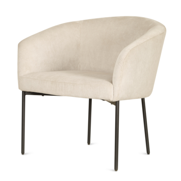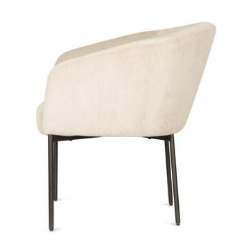 De Fauteuil Nikki is een stijlvol en elegante fauteuil. Het is gemaakt van ribstof en polyester, de kleur is wit/zand. De fauteuil heeft 4 zwart kleurige poten voor de steun. Het is een zeer zachte en comfortabele stoel die gebruikt kan worden in zowel de woonkamer als de kleedkamer. De Fauteuil Nikki is 77cm hoog, 73cm diep en 71cm breed.