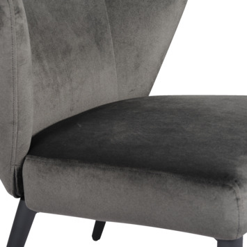 Ontdek deze prachtige fauteuil, met een verfijnde fluwelen afwerking die luxe toevoegt aan elke ruimte. De comfortabele zit en de zachte stof nodigen uit tot ultieme ontspanning, waardoor deze stoel de perfecte plek is om tot rust te komen. De antracietkleurige bekleding voegt een vleugje elegantie toe aan het geheel, waardoor deze fauteuil een tijdloze en veelzijdige keuze is voor jouw interieur.