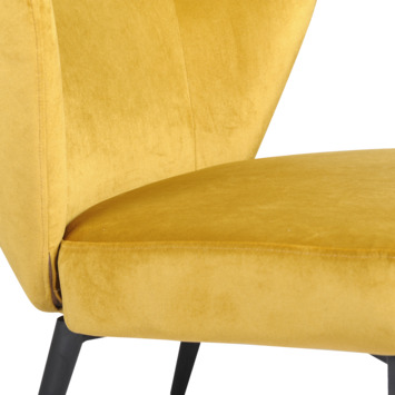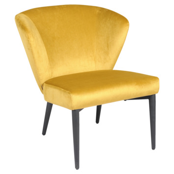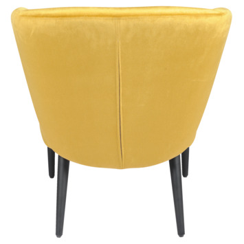 Een prachtige fluweel afgewerkte fauteuil. De comfortabele zit en zachte stof zorgen ervoor dat je heerlijk tot rust komt in deze stoel. De kleur is okergeel. De afmetingen zijn (HxBxD) 75x74,5x66,5 cm.