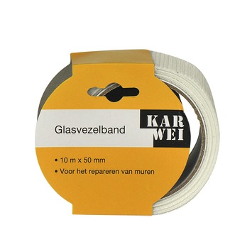De KARWEI glasvezelband 10mx50mm wit is een glasvezelband van het KARWEI eigen merk. De glasvezelband is geschikt om ter voorbereiding op stukadoren en afwerken, scheuren en naden in muren (gipskartonplaten) te repareren. Door de lijmlaag hecht de glasvezelband goed aan ruwe ondergronden.