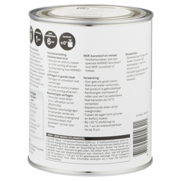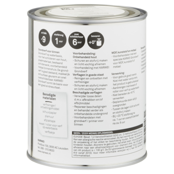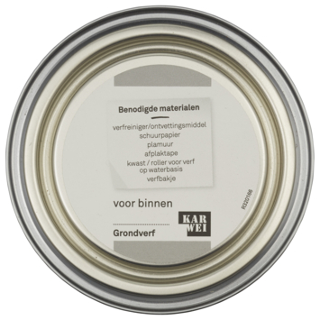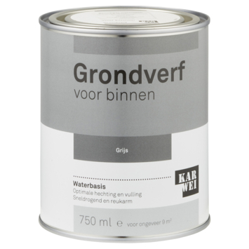 KARWEI grondverf voor binnen vormt de basis voor een goed eindresultaat. Het droogt snel, overschilderen is al mogelijk na 6 uur én het zorgt voor een optimale dekking. Daarnaast is de grondverf reukarm, waardoor je geen last hebt van nare geurtjes. Voor het beste resultaat gebruik je witte grondverf voor lichte kleuren en grijze grondverf voor donkere kleuren.