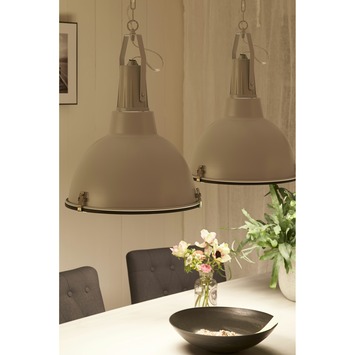 Mooie hanglamp in licht grijs met een stoere uitstraling. Geeft mooi licht.