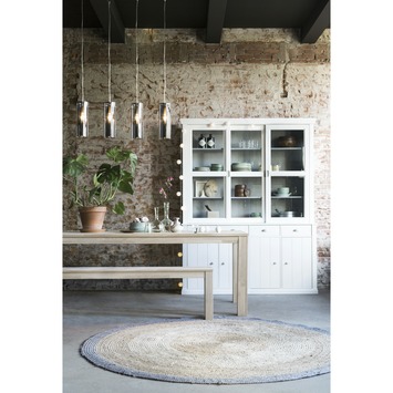 De KARWEI hanglamp Cyrion is een moderne hanglamp met vier lichtpunten voor gebruik binnenshuis. De kelken waarin de lampen hangen zijn gemaakt van rookglas, wat een chique effect heeft. De lamp is niet in hoogte verstelbaar. De KARWEI hanglamp Cyrion heeft een E14 fitting en is daarmee geschikt voor de maat lamp met de kleine fitting.