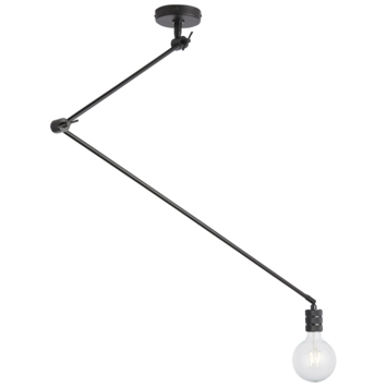 Karwei hanglamp Evi van mat zwart staal is in eigen hoogte en hoek verstelbaar is. Hierdoor kun je hem precies plaatsen boven de eettafel of de juiste hoek in de woonkamer verlichten.
