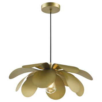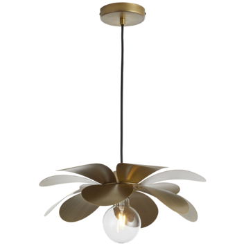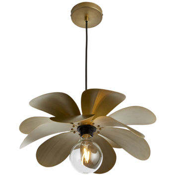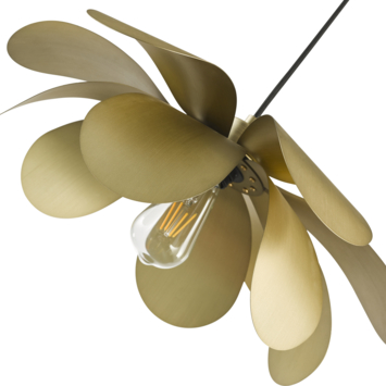 De hanglamp Floris is een opvallend item binnen de collectie. De unieke kap (ø40) in messingkleur maakt dat deze hanglamp een echte eyecatcher is voor boven de eettafel. De bladeren die de kap van de lamp vormen geven direct een botanisch gevoel aan de ruimte. Door de open kap is de lichtbron goed te zien en zorgt voor direct licht.