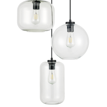 De Karwei hanglamp Lennon betreft een drievoudige lichtbron, vervaardigd met glazen bollen en een behuizing van elegant zwart metaal. Deze bollen zijn onderaan open, wat een ambianceverrijkend effect creëert in de omgeving. Elk van de drie lichtpunten is ontworpen voor exclusief gebruik met een E27 lichtbron. De diameter van de bollen bedraagt 52 cm.
