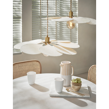 Hanglampen zijn onmisbaar in je interieur, ze geven veel licht, sfeer, en nemen geen vloerruimte in beslag! Deze prachtige hanglamp Linde heeft een gave retro uitstraling door zijn ronde vormen en het gebruik van linnen, zijn neutrale kleur maakt het een lamp die je overal kan ophangen! Hang hem bijvoorbeeld in de hal voor een vrolijk welkom.