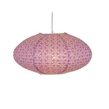 De hanglamp Merel dessin roze is een vrolijke lamp met een warme uitstraling. Het leuke bloementjes dessin in roze kleuren en de ronde ovaalvorm maken dat de lamp uitstekend past op de kinderkamer. De lamp geeft de kinderkamer direct kleur en zorgt voor een aangename sfeer. De lamp heeft een diameter van 50 centimeter en heeft een E27 fitting. De lamp wordt geleverd exclusief lichtbron.