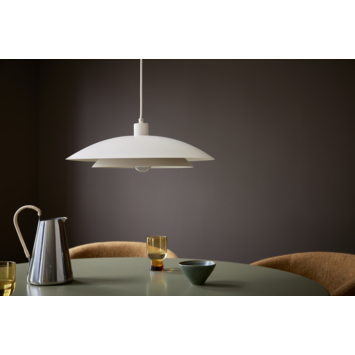 De Nova hanglamp is gemaakt van metaal en heeft een diameter van 47,5 cm. De lamp is beige van kleur en heeft een modern, gelaagd design. De lamp is door zijn grootte een echte eye-catcher en past goed boven de eerkamertafel of bijvoorbeeld in de woonkamer boven de salontafel.