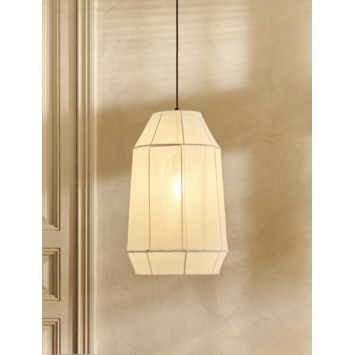 KARWEI hanglamp Rowan is gemaakt van textiel met een blind metalen frame. Door het textiel zorgt hanglamp Rowan voor zacht licht en past hij mooi in de slaapkamer of woonkamer.