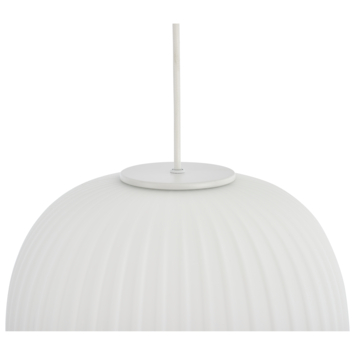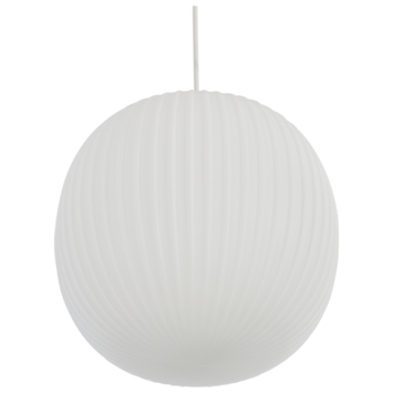 Hele mooie lamp, hangt bij mij boven de eettafel. Door de ribben in de bol krijgt het licht een subtiele verdeling en zie je nog beter de ronde vorm boven de tafel. Bovendien geeft het roomwitte glas een prettige lichtsterkte. Dit is fijn om bij te eten, maar ook om even aan tafel te schuiven met de laptop.